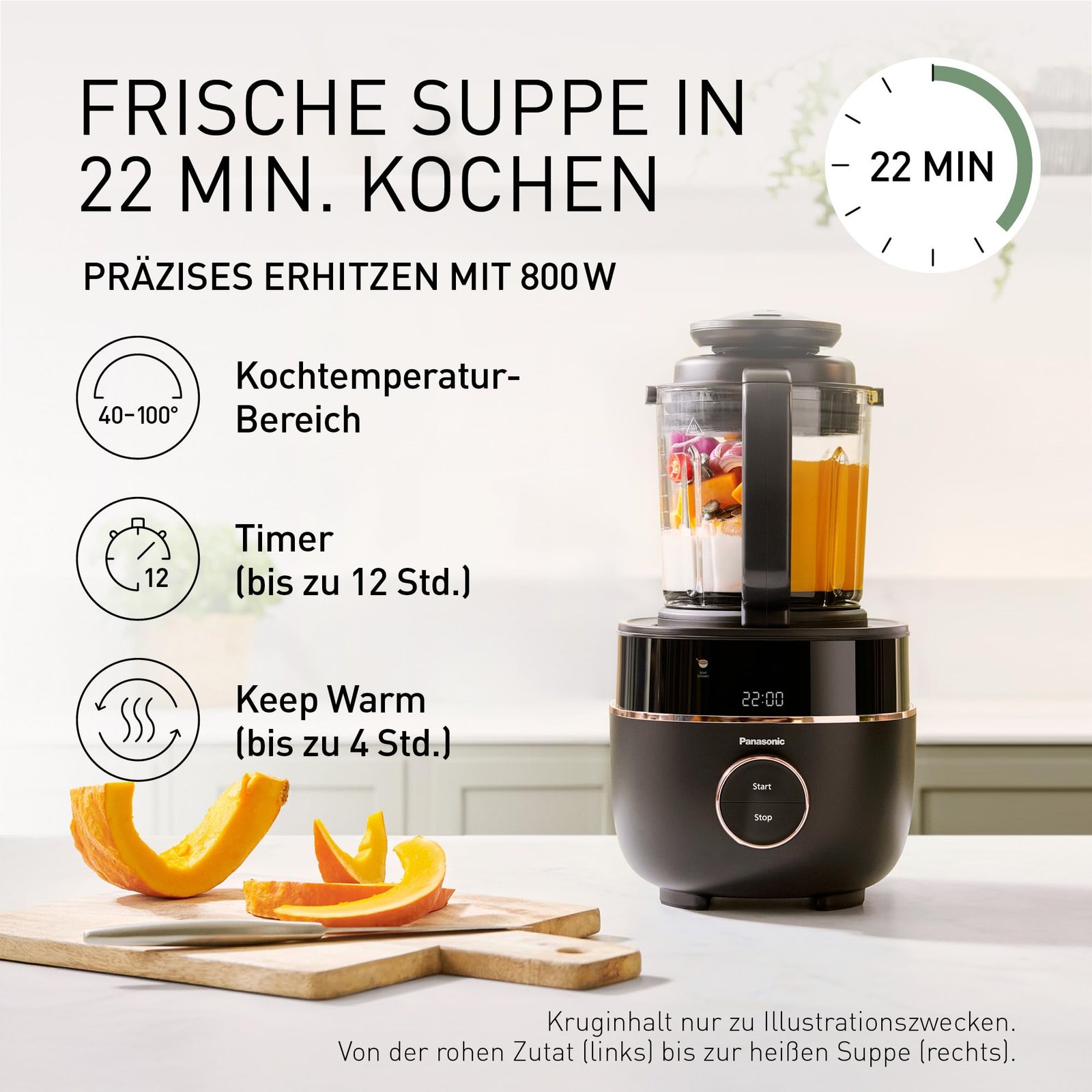 • PRÄZISES MIXEN: Mit den starken 6-Lamellen-Klingen und dem Motor dieses Suppenbereiters lassen sich Suppen aus frischen, rohen Zutaten schnell zubereiten und mixen