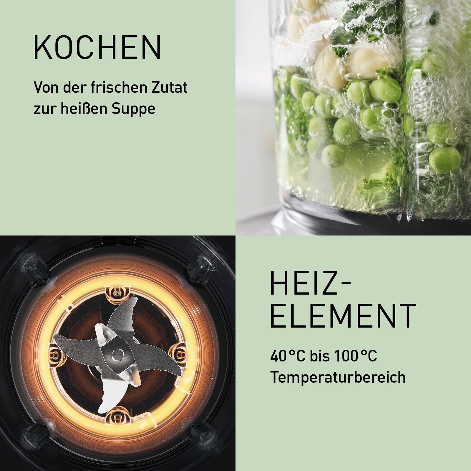 Einzelheiten: Erleben Sie das heiße oder kalte Mixen und Kochen mit weniger Aufwand als je zuvor. Ob cremige Smoothies oder köstliche heiße Suppen – alles nur auf Knopfdruck und angenehm leise.