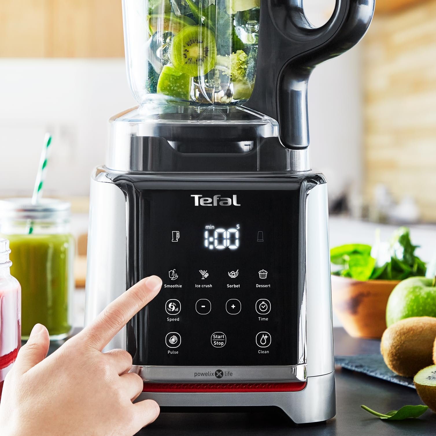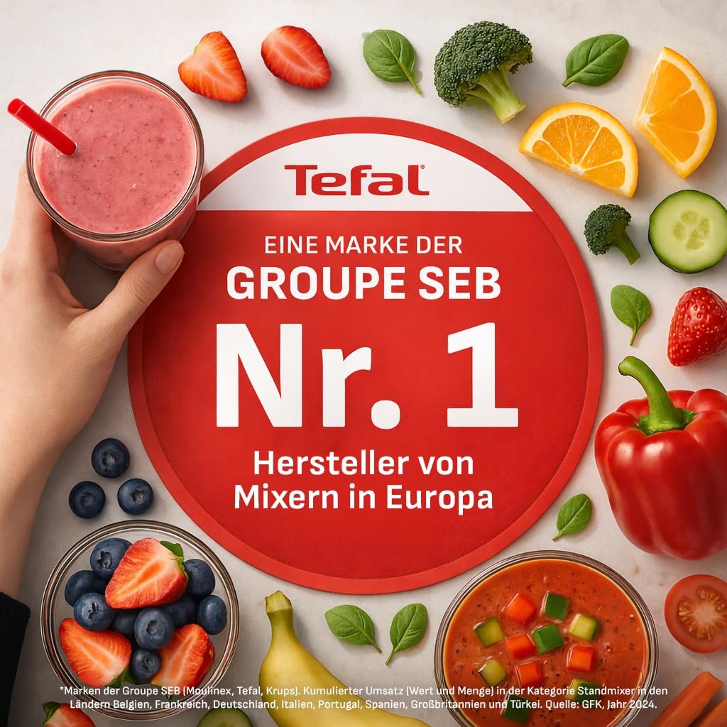 Tefal InfinyMix Hochgeschwindigkeits-Standmixer, 5 Auto-Programme + manuelle Einstellung, 2,6-l-Tritan-Behälter, inkl. 600ml Reisebecher/Stampfer/Rezeptheft, Silber, BL91HD31